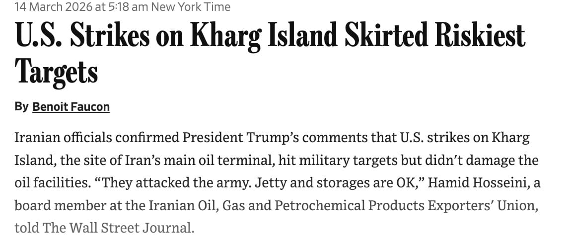 This is the most dangerous escalation of the war so far. Not because Kharg Island was hit, but because of what COULD happens next. If Iran attacks a major Gulf oil facility like Saudi Aramco in retaliation, we are talking about oil at $150 or higher. If Iran backs down and reopens the Strait, oil drops 20% in a day. The entire trajectory of 2026 markets hinges on which of those two things happens first. Indeed a game of chicken at its extreme.